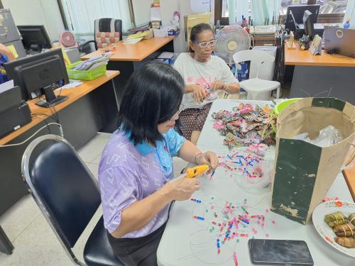 📝นางสาวทิพย์วรรณ อุทกธารา พัฒนาการอำเภอเถิน พร้อมด้วยเจ้าหน้าที่พัฒนาชุมชนอำเภอเถิน และเครือข่ายงานพัฒนาชุมชนอำเภอเถิน ร่วมจัดทำผีเสื้อจากผ้าไทยและรวบรวมเพื่อนำส่งสำนักงานพัฒนาชุมชนจังหวัดลำปาง จำนวน 120 ตัว ในการสนับสนุนการออกร้านงานกาชาดของสมาคมแม่บ้านมหาดไทย กิจกรรมจำหน่ายบัตรจับผีเสื้อเสี่ยงโชค เพื่อเฉลิมพระเกียรติสมเด็จพระกนิษฐาธิราชเจ้ากรมสมสมเด็จพระเทพรัตนราชสุดาฯ สยามบรมราชกุมารี ในวาระเจริญพระชนมพรรษา 70 พรรษา ซึ่งมีการจัดจำหน่ายบัตรผีเสื้อเสี่ยงโชค จัดนิทรรศการเฉลิมพระเกียรติ และจัดแสดงสินค้าและจำหน่ายสินค้า OTOP โดยกำหนดจัดขึ้นระหว่างวันที่ 11-21 ธันวาคม 2568 ณ สวนลุมพินี เขตปทุมวัน กรุงเทพมหานคร